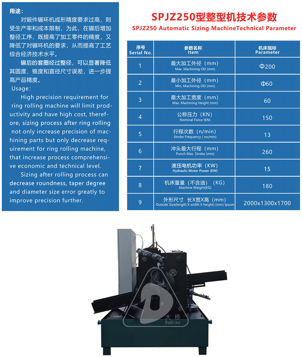 對(duì)鍛件輾環(huán)機(jī)成形精度要求過高,則受生產(chǎn)率和成本限制,為此,在輾后增加整徑工序,既提高了加工零件的精度,又降低了對(duì)輾環(huán)機(jī)的要求,從而提高了工藝綜合經(jīng)濟(jì)技術(shù)水平。輾后的套圈經(jīng)過整徑,可以顯著降其圓度、錐度和直徑尺寸誤差,進(jìn)一步提高產(chǎn)品精度。
